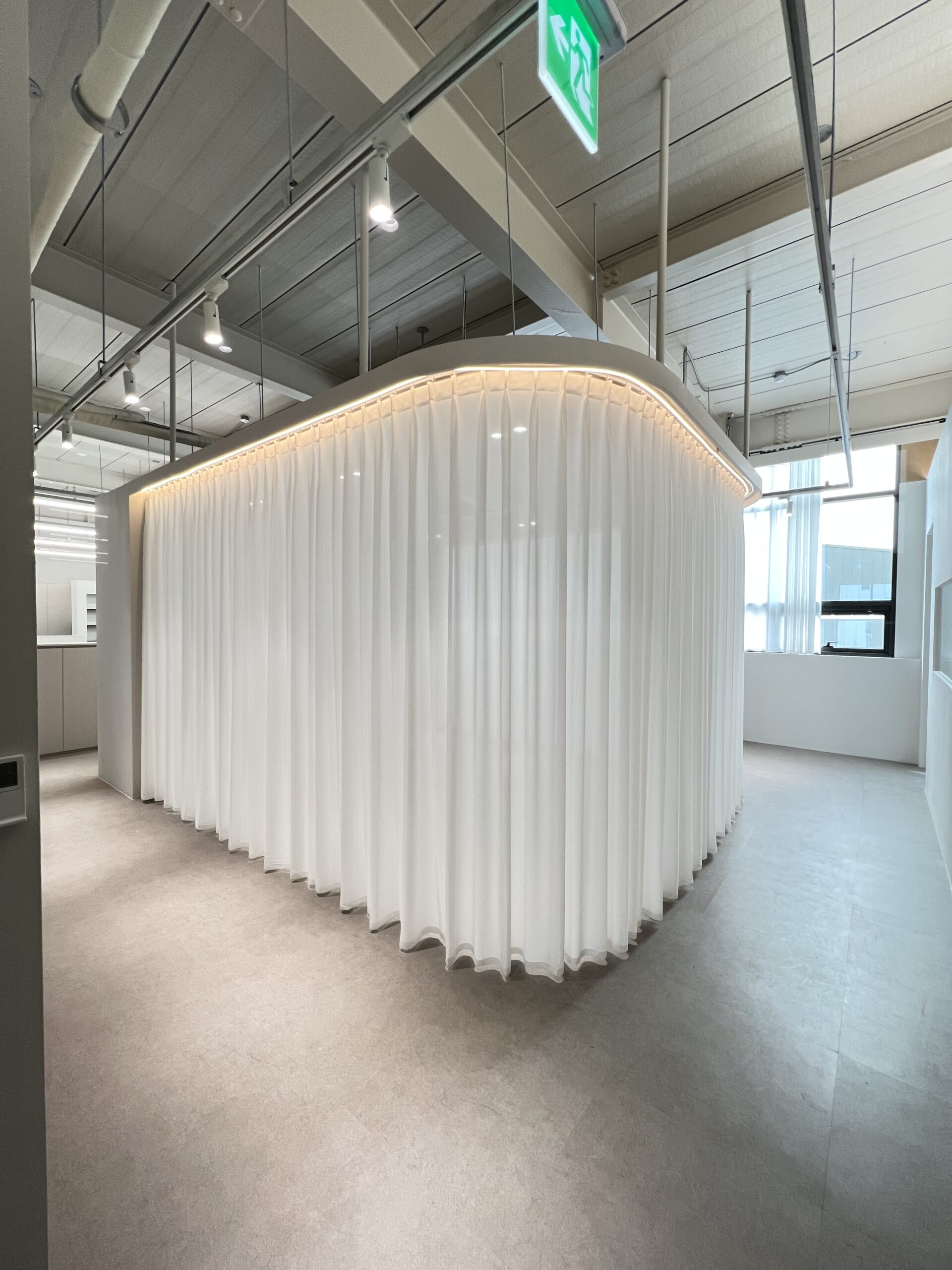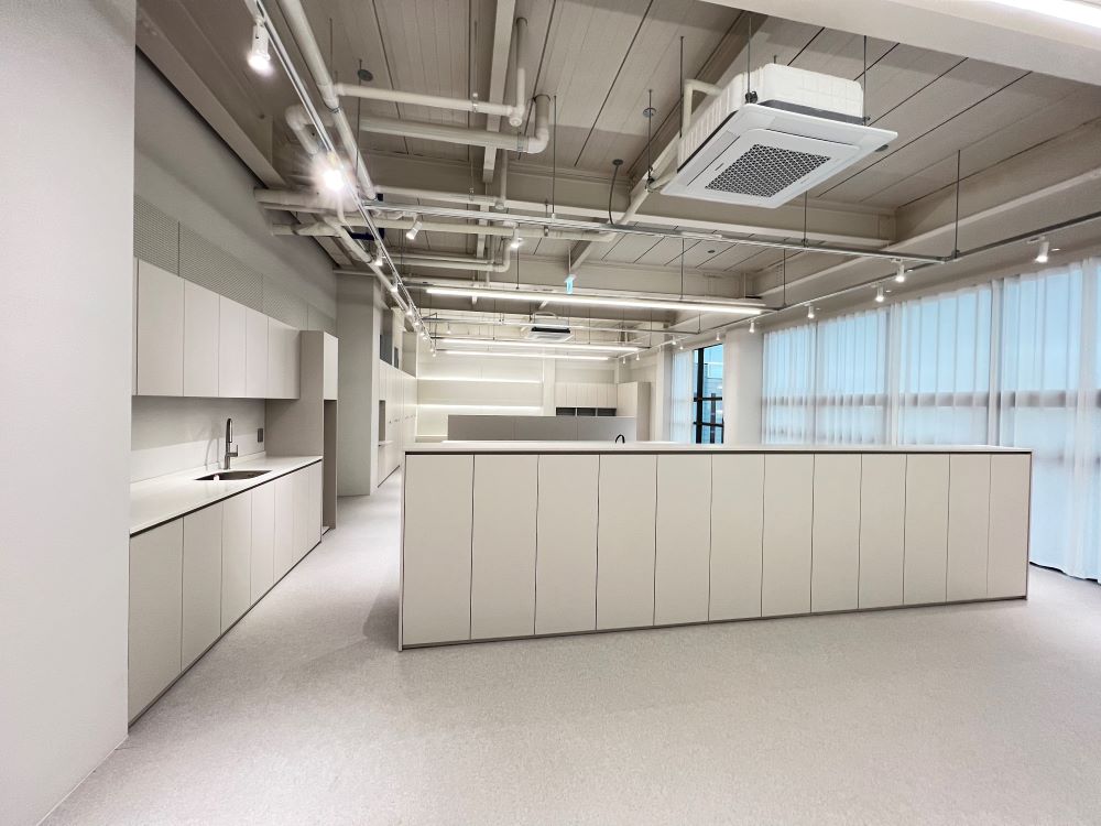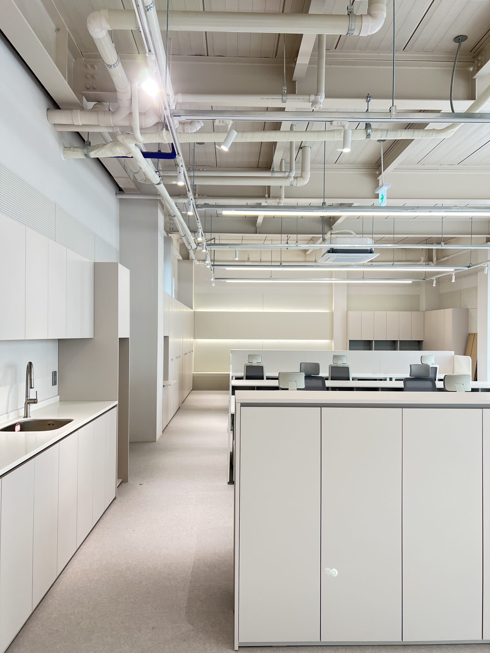 김포 양촌리에 위치한 명인 화장품의 새로운 보금자리는 ‘Clean & Professional’을 핵심 키워드로 설계되었습니다. 화장품 브랜드가 지향하는 순수함(Pure)을 화이트 톤의 가구와 바닥재로 시각화하고, 노출 천장을 통해 45평 이상의 확장된 개방감을 부여했습니다.